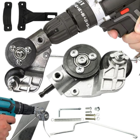 Товщина металу, який можна різати, залежить від конкретної насадки та потужності дриля, але такі адаптери зазвичай працюють з тонколистовими сталевими та залізними листами (до ~1 мм і вище для деяких матеріалів при використанні правильної техніки).