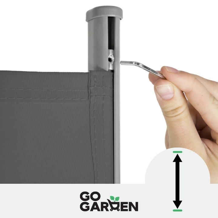 Бічна маркіза оснащена практичним регулюванням висоти полотна на 6 см. Це дозволяє точно налаштувати положення полотна відповідно до ваших уподобань. Регулювання висоти здійснюється за допомогою шестигранного ключа №2 (не входить до комплекту). Це рішення робить маркізу ще більш функціональною та універсальною. Регулювання швидке і просте, не вимагає розбирання.