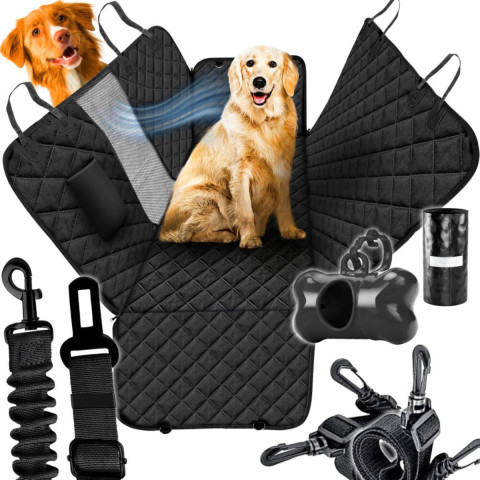 Представляємо практичний  килимок для автомобіля для домашніх тварин . Цей виріб служить  манежем та чохлом для заднього сидіння . Кутові блискавки дозволяють швидко регулювати розмір відповідно до ваших потреб. Килимок запобігає потраплянню бруду на сидіння та зменшує кількість шерсті домашніх тварин. Килимок великий  та має міцні гачки, що запобігають ковзанню . Після того, як гачки прикріплені, а блискавки закриті, він утворює  гамак,  в якому ваш улюбленець може пересуватися (прикріплений до замка ременя безпеки за допомогою повідця). Після розстібання бічних блискавок він функціонує  як чохол для сидіння , де  також може сидіти власник тварини . Килимок також можна розкласти в  багажнику  , коли всі гачки належним чином закріплені.
