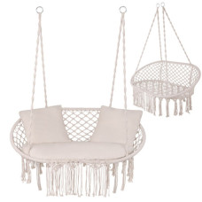 Садова гойдалка Gardlov "Гніздо лелеки" двомісна до 300 кг + 3 подушки бежева